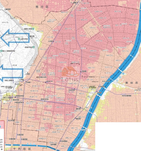 台東区は神田川、荒川に囲まれ、洪水リスクが地域ごとに異なります。