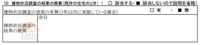 当社の書式では、該当箇所をご案内するにとどめています。これは、重要事項説明と売買契約書で違うことが書いてあるかどうか、細かく確認をされた方もいた経験に基づき、契約書の原本を見ならがら解説をしたほうが、お客様の理解に役立つという考えのためです。