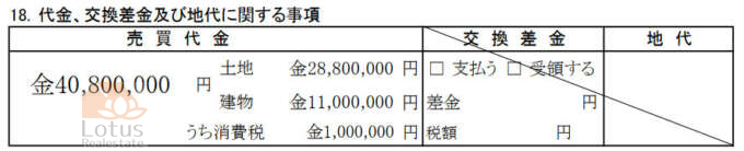 ちなみに「交換差金」とは建物の交換を行う際の評価額の差額です。筆者は目にしたことがありません。地代とは借地である場合の借地料のこですが、通常の売買では記載されません。借地権者と借地権設定者との取引の場合にはここに記載します。借地権付きのマンションの一室を買う場合には「借地説明書」という別途資料を提供して、それを用いて概要を説明します。