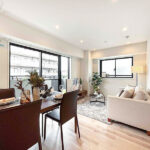 100㎡を超える広々とした3LDKで、二面バルコニー付きの角部屋です 。2025年7月下旬完了予定のリノベーションで、食洗機付きキッチンや浴室乾燥機など設備も充実します 。