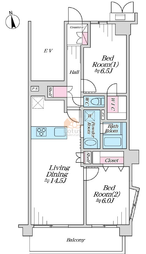 間取 | 2LDK 1階 南東LDK14.5畳 洋室6.5畳 洋室6.0畳 |