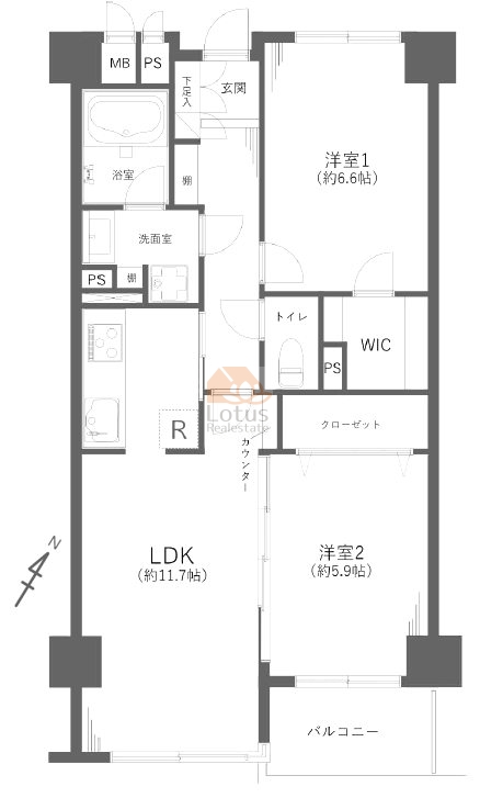 | 面積 | 59.09m² 壁芯(バルコニー4.05m²) | |||