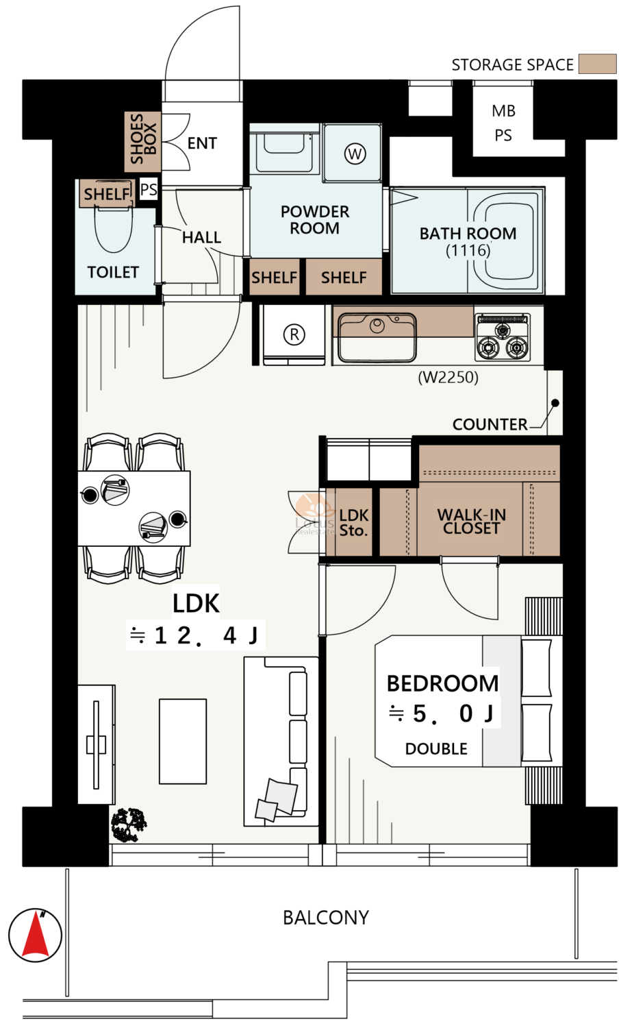 面積 | 43.2m² 壁芯(バルコニー7.35m²) | |||