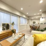 リノベーション:フローリング、クロス、洗面、トイレ、キッチン(カップボード付)、ユニットバス、建具、新規エアコン(LDK・2台)設置、床暖房(LD)
