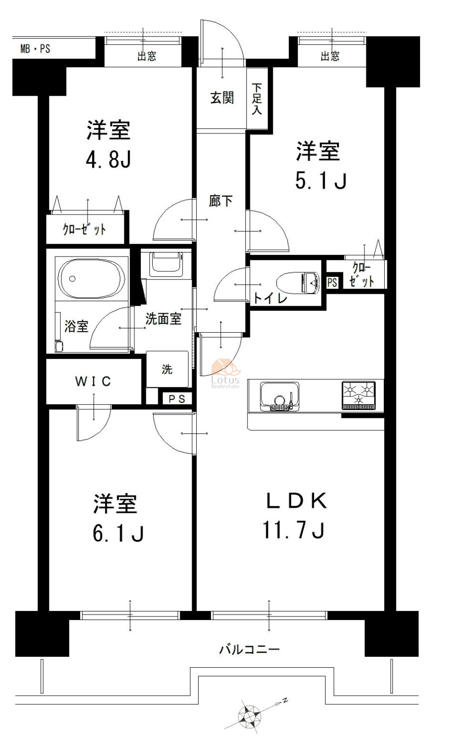 60.76㎡の3LDK+WICの間取り。2023年7月に大規模修繕工事実施済みで、管理体制も良好です。築27年ですが、新規リノベーションにより設備が一新され、中古物件の懸念を解消します。