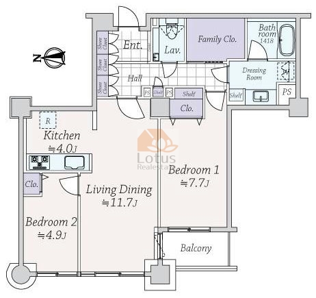 センチュリーパークタワー 23階 2LDK 72.42㎡