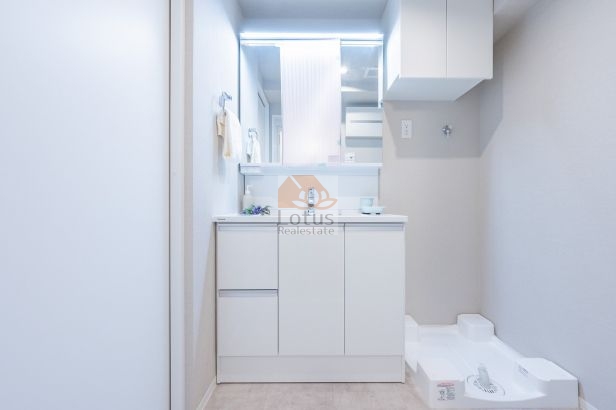リノベーション: システムキッチン交換、ユニットバス交換、洗面化粧台交換、トイレ交換、フローリング張替、建具交換、全クロス張替、洗濯機用防水パン交換等