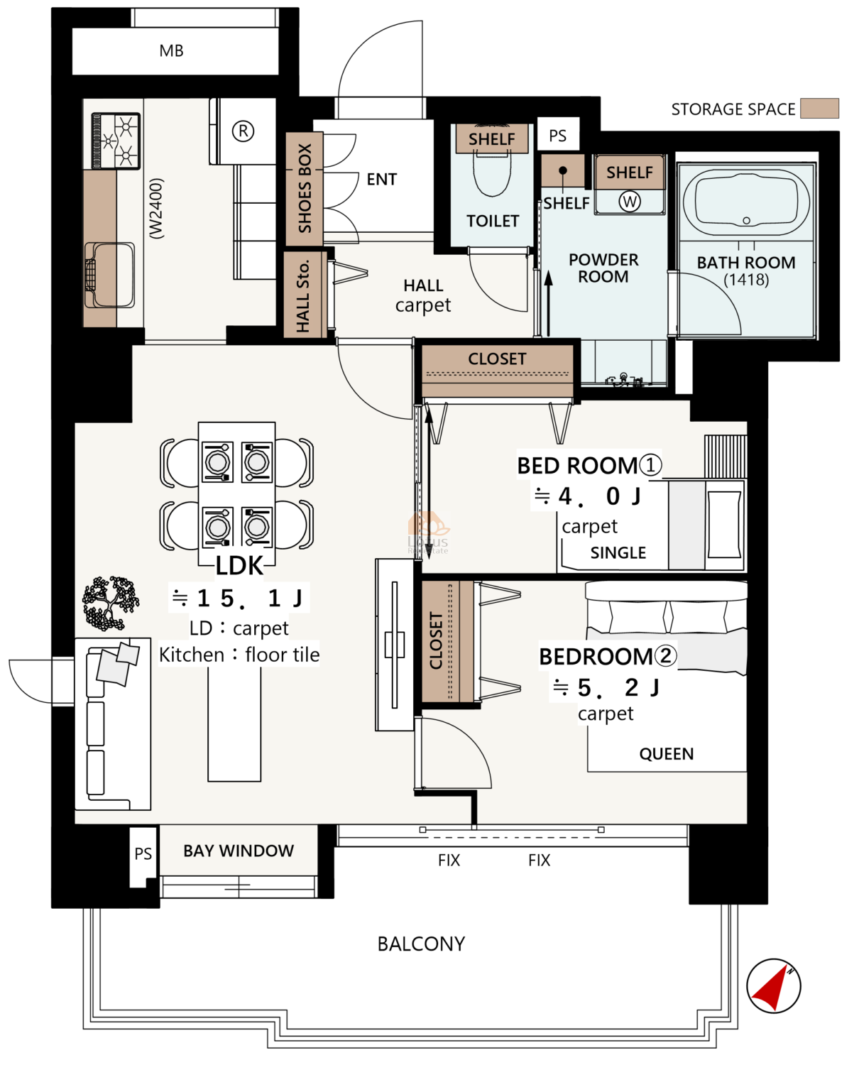 間取 | 2LDK 3階 南東 |