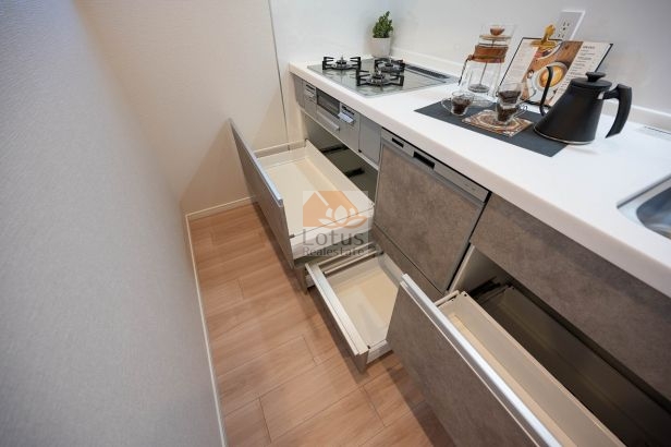 専有面積85.99㎡の3LDKで 、リビング・ダイニング・キッチンは約17.4帖と広々としており 、ご家族が多い方やゆったりとした空間を求める方に最適です。ビルトイン食器洗い機、ディスポーザー、床暖房(LDK)、追い焚き機能付き浴室など、最新の充実した設備が日々の家事負担を大幅に軽減し、より豊かな生活を提案します。