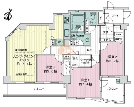 面積 | 85.99m² 壁芯(バルコニー14.82m²) | |||