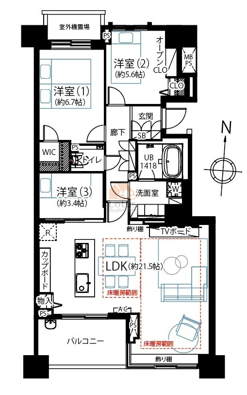 面積 | 81.67m² 壁芯(バルコニー7.4m²) | |||