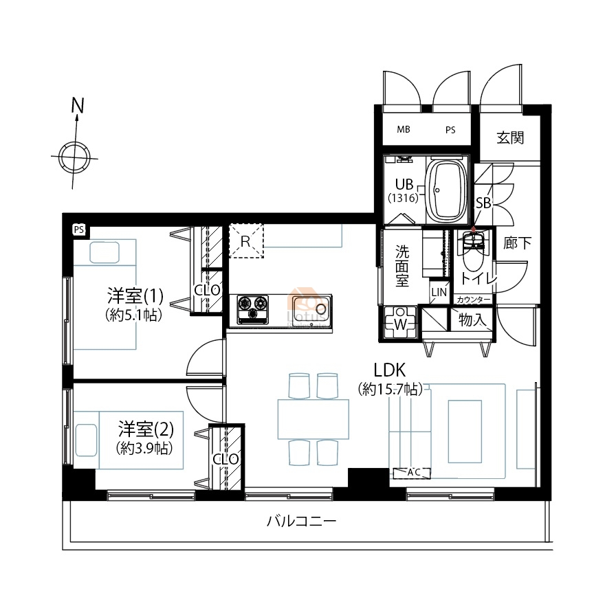 | 間取 | 2LDK 3階 南 |