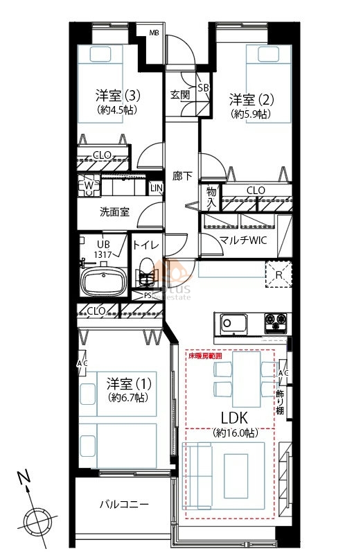 | 面積 | 79.11m² 壁芯(バルコニー5.13m²) | |||