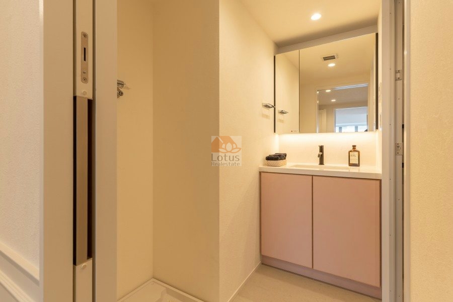 リノベーション: フローリング新規貼替、壁・天井クロス新規貼替、給水管・給湯管新規交換(専有部)、照明器具新規設置、建具・玄関収納等新規交換、エアコン一基新規設置、オリジナル洗面化粧台新規交換、TOTO製洗浄便座付トイレ新規交換、LIXIL製ユニットバス新規交換(浴室換気乾燥機付)、オリジナルシステムキッチン新規交換(食器洗い機付)、給湯器新規交換(追焚式)(2025年8月完了)