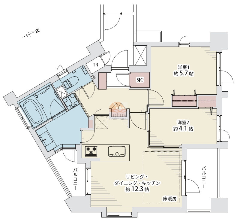 | 面積 | 56.56m² 壁芯(バルコニー9.71m²) | |||