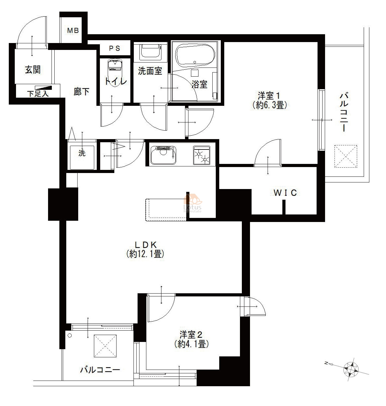 | 面積 | 54.88m² 壁芯(バルコニー7.52m²) | |||