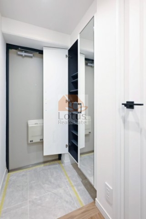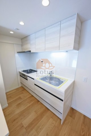 リノベーション: 給湯器交換、下足入れ交換、システムキッチン交換、洗濯水栓器具交換、ユニットバス交換、防水パン交換、洗面台交換、スイッチパネル設置、トイレ交換、ダウンライト設置、全室クロス張替、照明器具設置、全フローリング張替、インターフォン交換、全建具交換、玄関人感センサー設置、浴室乾燥機、CF張替