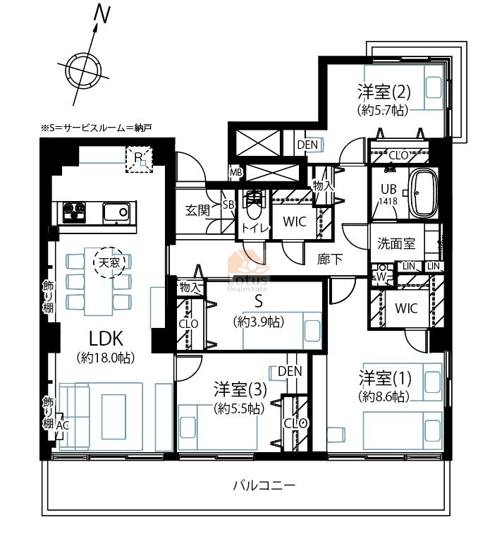 最上階かつ三方角部屋という稀有な条件で、都会の喧騒から離れた開放的な暮らしを手に入れたい、というお客様の願いを叶えます。ワイドスパンバルコニーで日々の疲れを癒し、ゆったりとした時間を過ごせるでしょう。