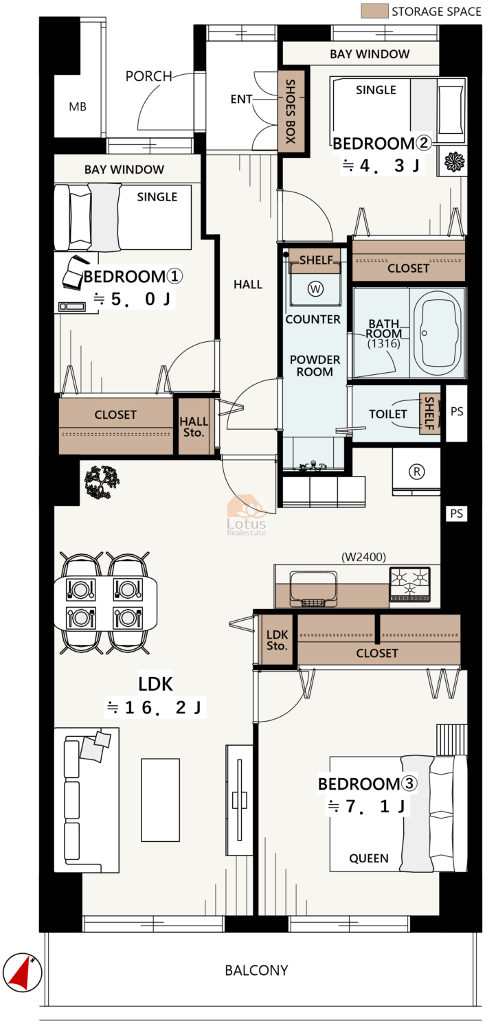 | 面積 | 74.16m² 壁芯(バルコニーm²) | |||