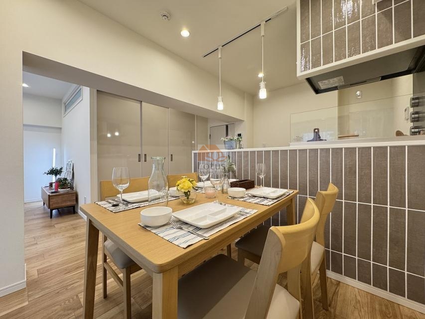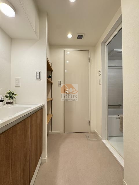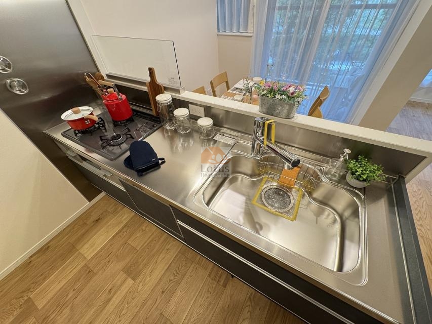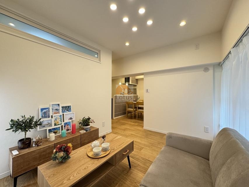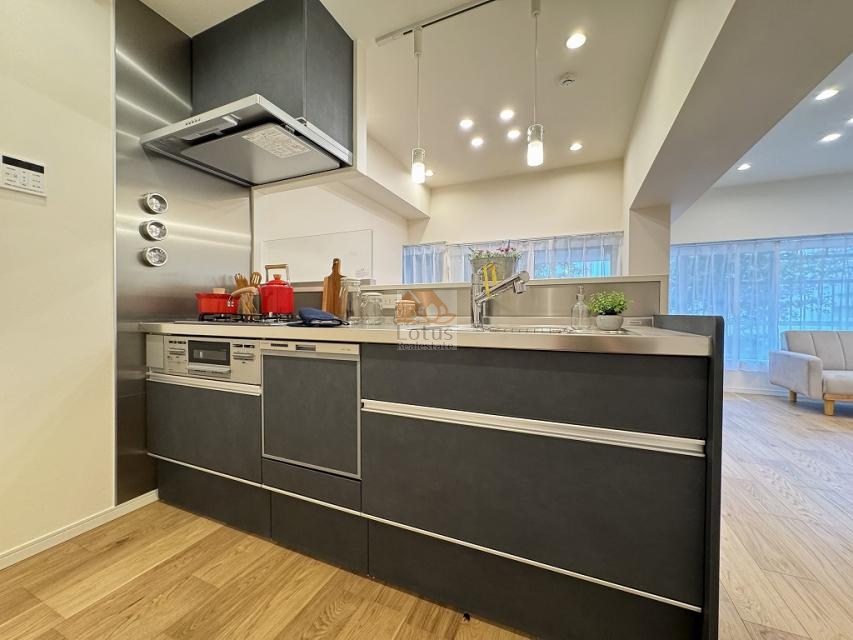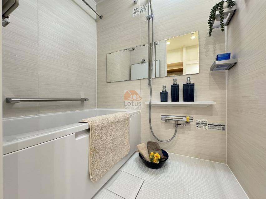 リノベーション:フローリング(天然木使用)、天井・壁クロス、建具(鏡面仕様)、玄関・洗面室・トイレ フロアタイル、シューズボックス(鏡面仕様)、給湯器、システムキッチン2100(食洗機・浄水器付)、装飾タイル設置、ユニットバス1115(追焚付)、室内給排水管交換(スラブ上の交換可能な部分のみ)、浴室暖房乾燥機、全居室AC設置可(一部先行配管)、洗面化粧台750、照明器具付き(LED)他