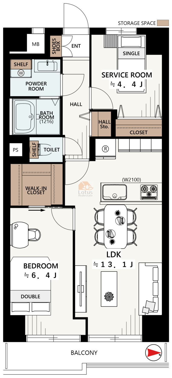 | 面積 | 57.75m² 壁芯(バルコニー5.5m²) | |||