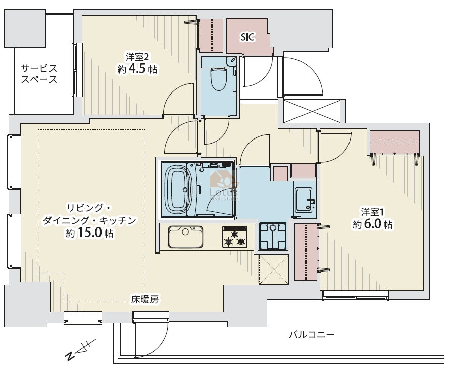 ペット相談可 で、ペットにも優しいすべりにくいフローリング やツメに強くやぶれにくい網戸 を採用。ペットとの快適な共生を望むお客様の不便さを解消できます。SIC もあり、お散歩グッズの収納にも便利です。