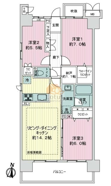 駅近 の利便性と緑豊かな高台 の大規模マンション を新規リノベーション ! 3LDK で床暖房 、WIC など充実の設備です。