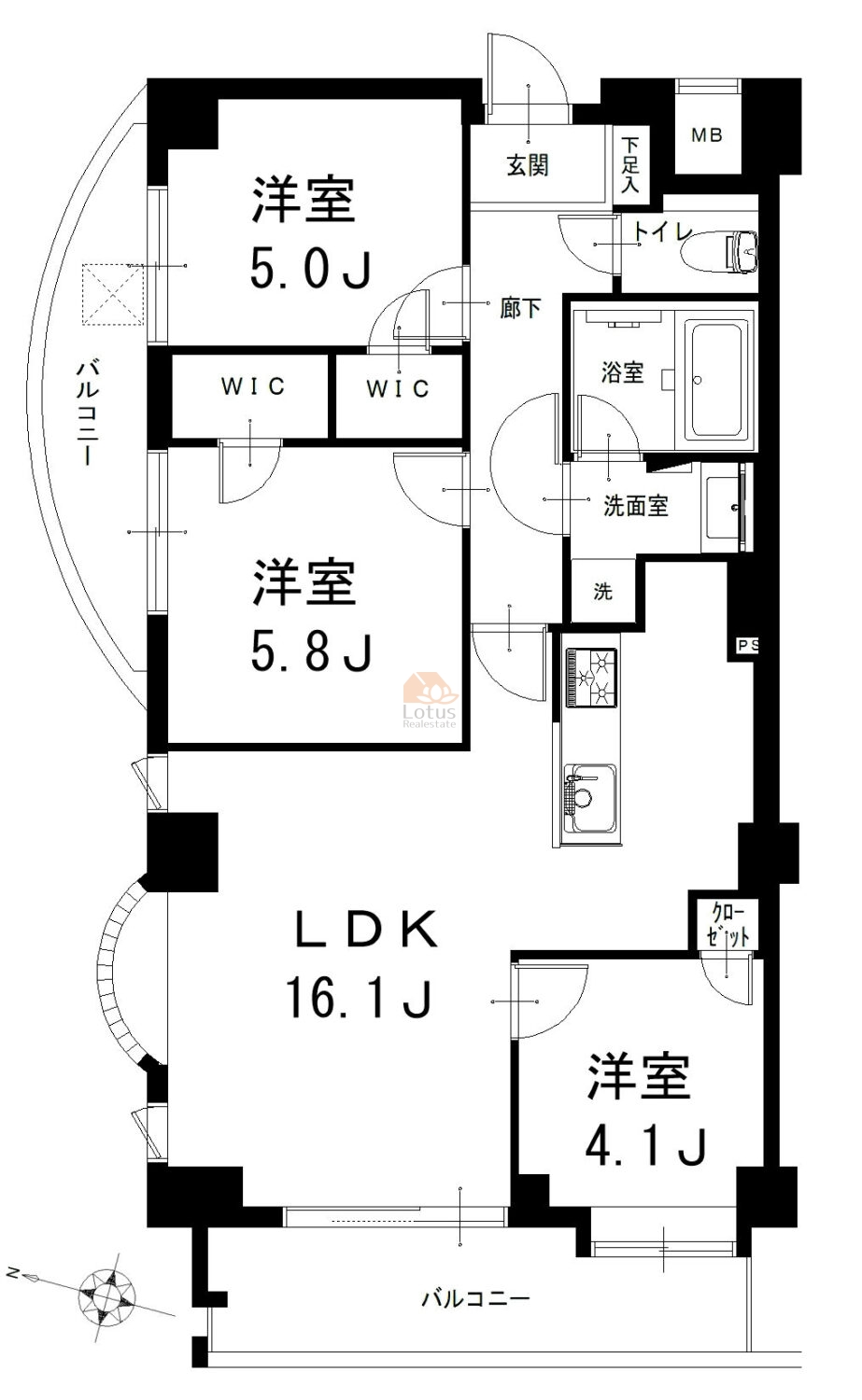 | 面積 | 69.15m² 壁芯(バルコニー12.75m²) | |||