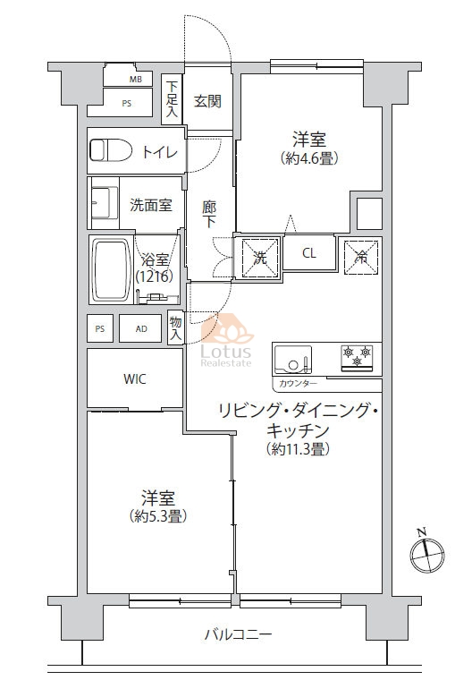 | 面積 | 51.3m² 壁芯(バルコニーm²) | |||
