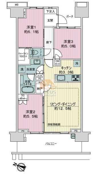 | 面積 | 70.12m² 壁芯(バルコニー12.4m²) | |||