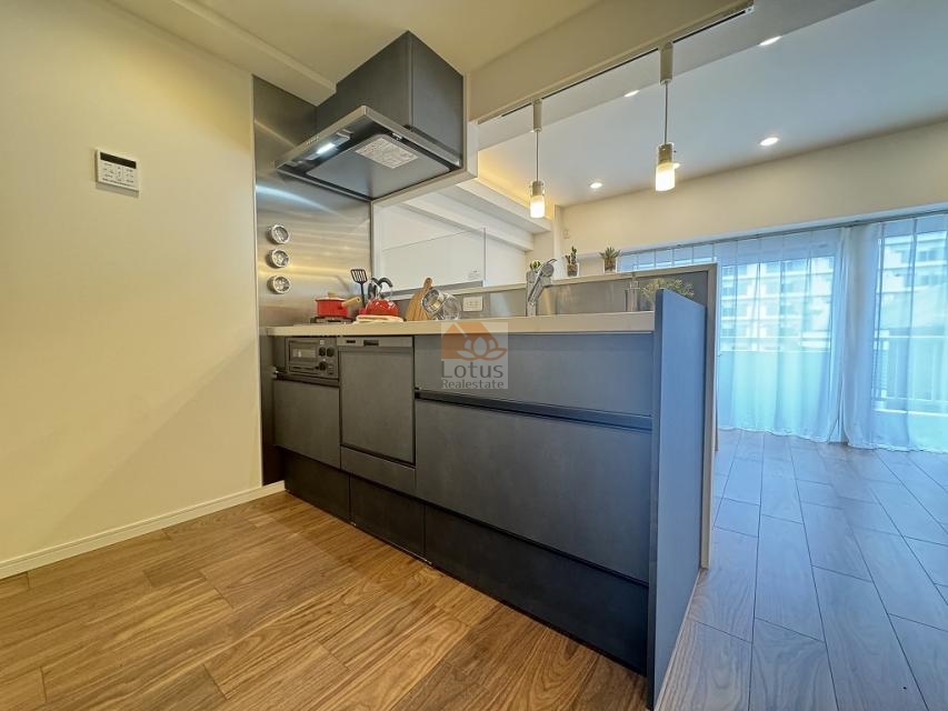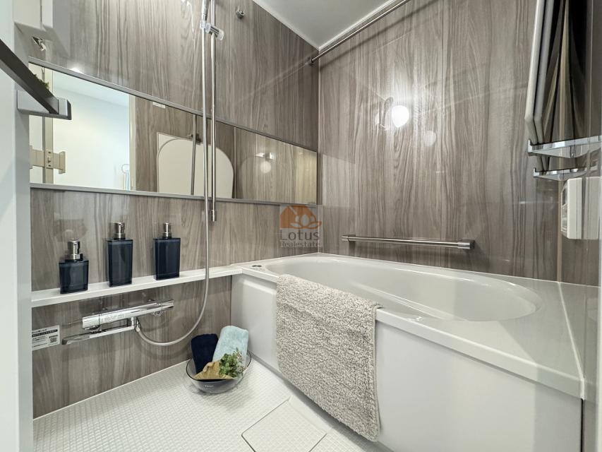 リノベーション(2025年4月完成): フローリング(天然木使用)・建具(鏡面仕様)・天井・壁クロス・シューズラック・玄関・洗面室・トイレ フロアタイル・システムキッチン1800 (食洗機・浄水器付)・装飾タイル設置・ユニットバス1216(追焚付)・浴室暖房乾燥機・洗面化粧台1000・シャワートイレ・給湯器・室内給排水管交換(スラブ上の交換可能な部分のみ)・全居室AC設置可(一部先行配管)・照明器具付き(LED)