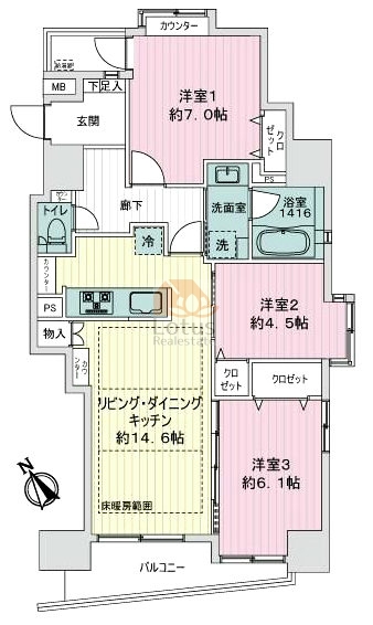 75.01㎡の専有面積に3LDKの間取りと収納が豊富で、ゆったりとした空間で子育てをしたいファミリー層の悩みを解決します。特に約14.6帖のLDKは、家族団らんの時間を大切にしたい方にぴったりです 。