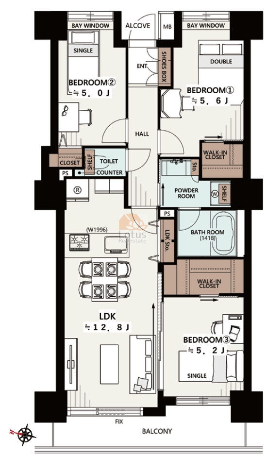 3LDK+2WIC(68.08㎡)の間取りで、大容量のWICが2つ新設されており、収納不足に悩むファミリー層に解決策を提供します。ペット飼育可(細則あり)で、大切なペットとの暮らしを諦めたくないお客様にも新しい生活を提案します 。