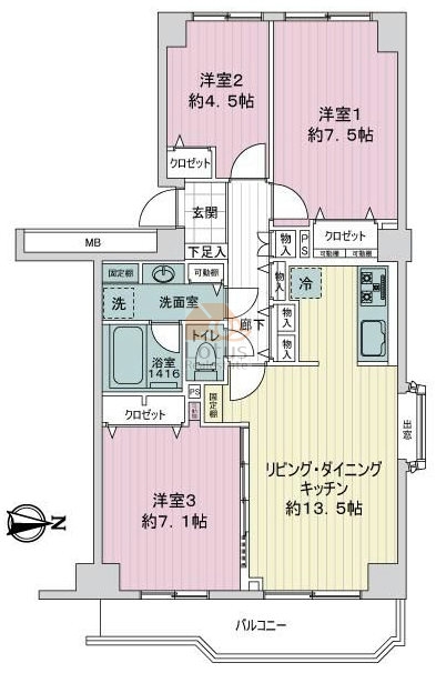 光が丘パークタウンゆりの木通り南1号棟 901 3LDK 73.58㎡