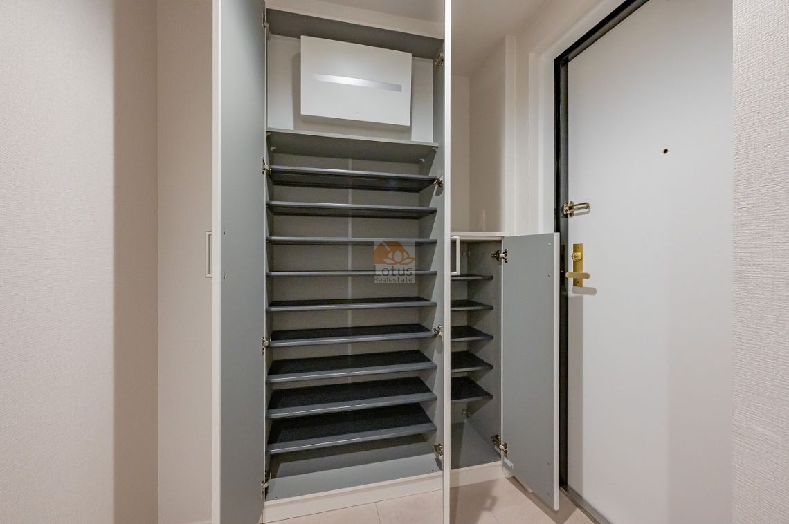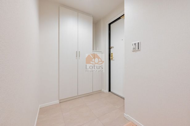 玄関がクランクイン設計でプライバシーが守られ、アウトフレーム工法により家具の配置の自由度が高い設計です。オートロックも完備されており、安心感のある住まいを探しているご家族に最適です。