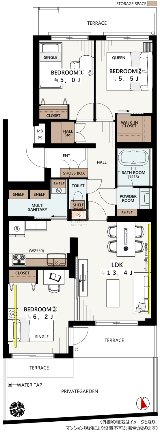 | 面積 | 76.14m² 壁芯(バルコニー24.69m²) | |||