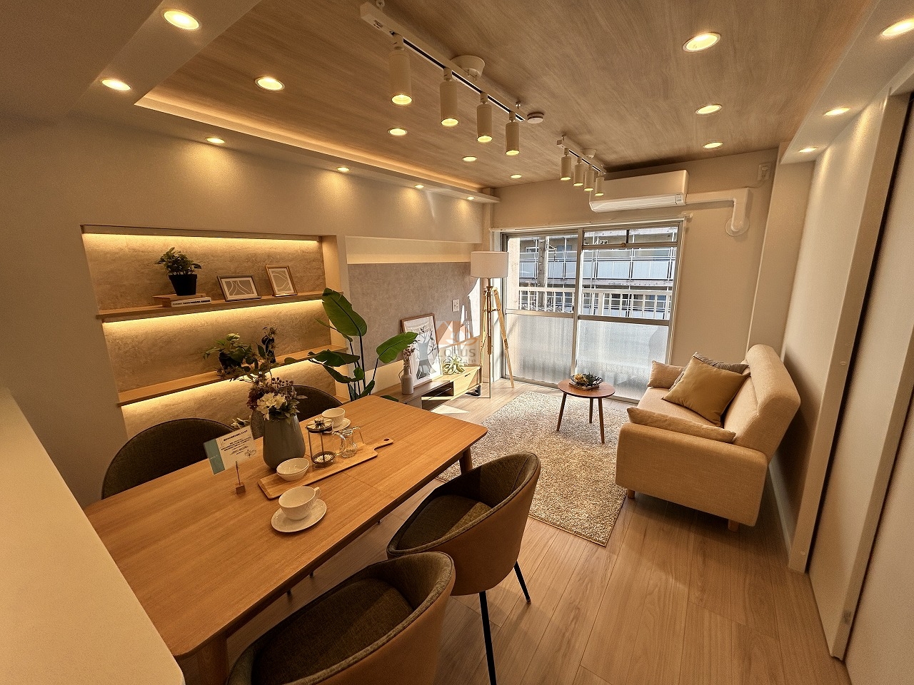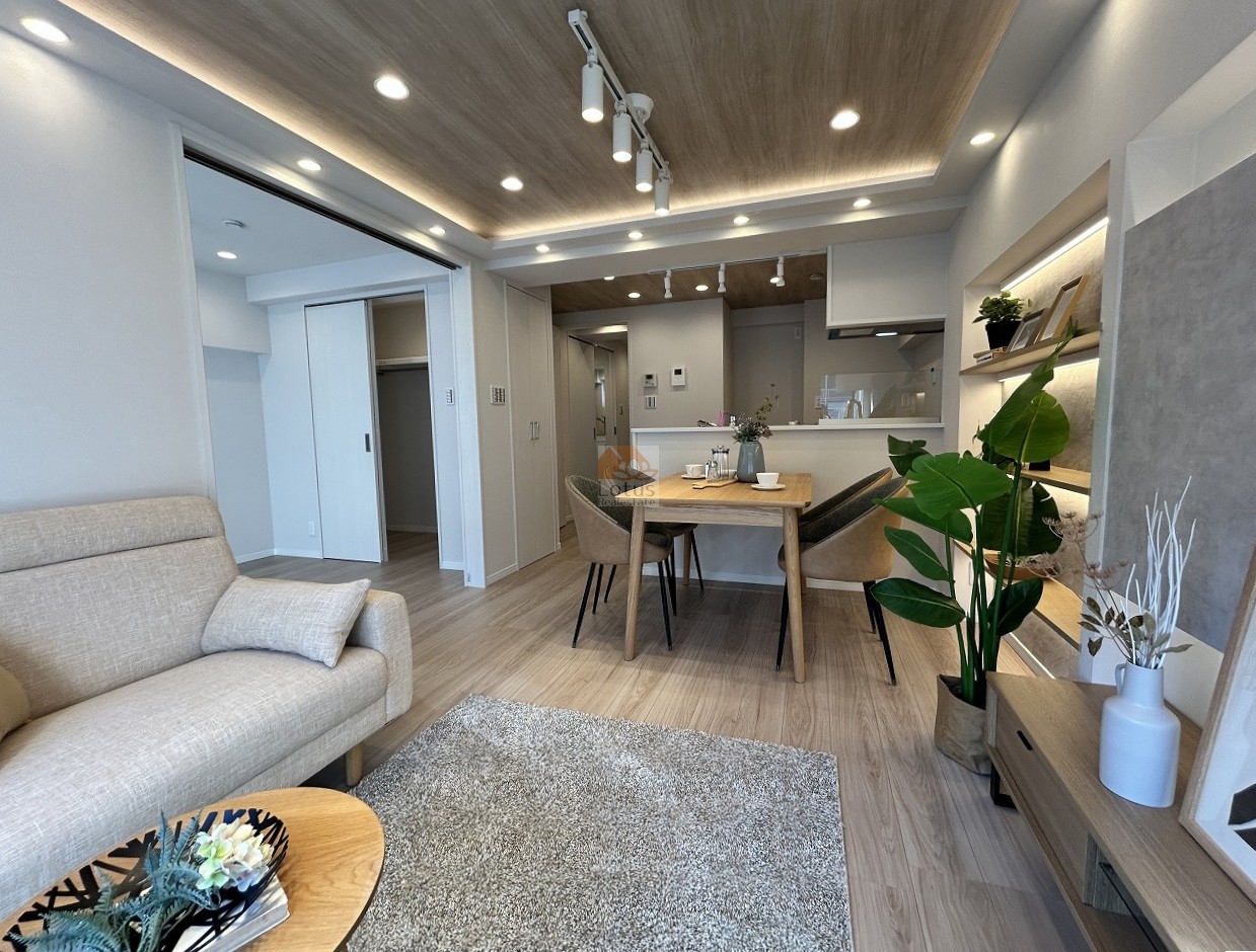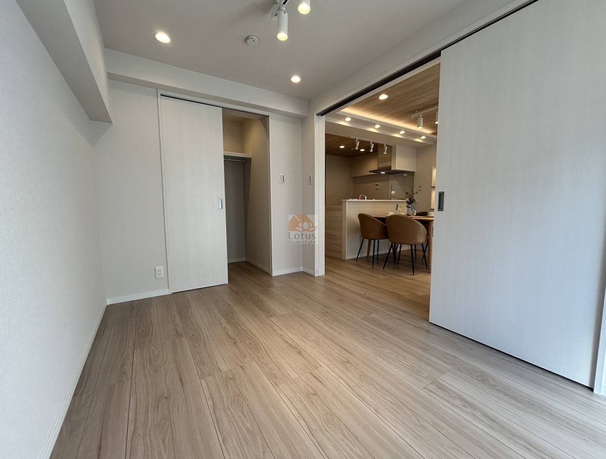 リノベーション:壁・天井クロス、フローリング、建具、フロアタイル、システムキッチン、ユニットバス、洗面化粧台、トイレ、可動棚、エアコン、ダウンライト、クリーニング…(2025年12月完了)