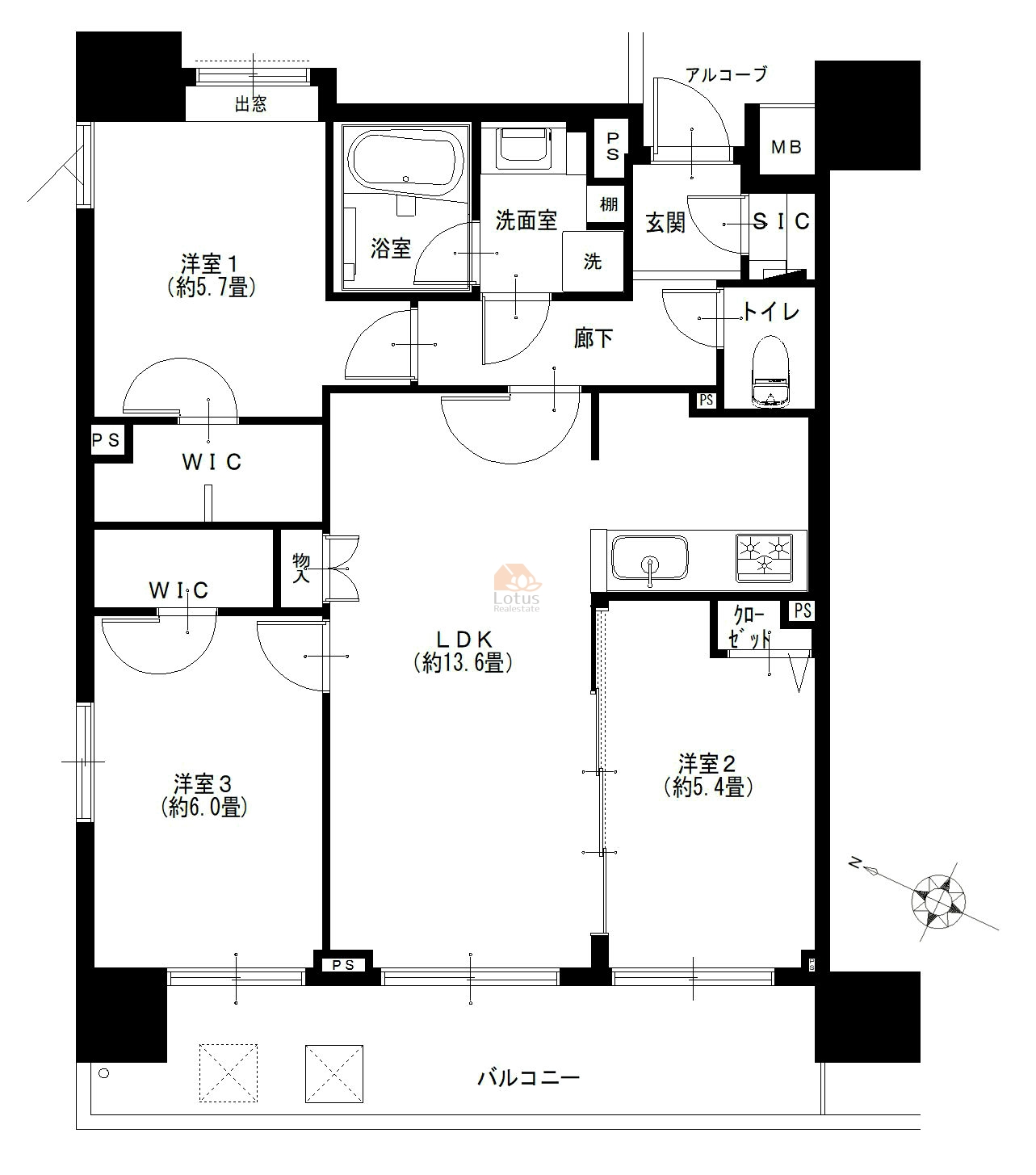 | 面積 | 70.09m² 壁芯(バルコニー11.6m²) | |||