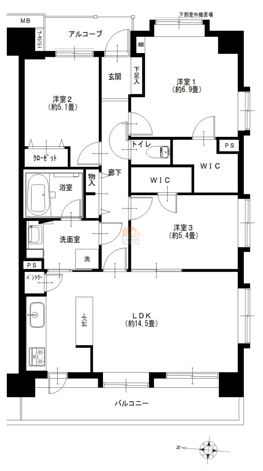 | 面積 | 76.11m² 壁芯(バルコニー10.65m²) | |||