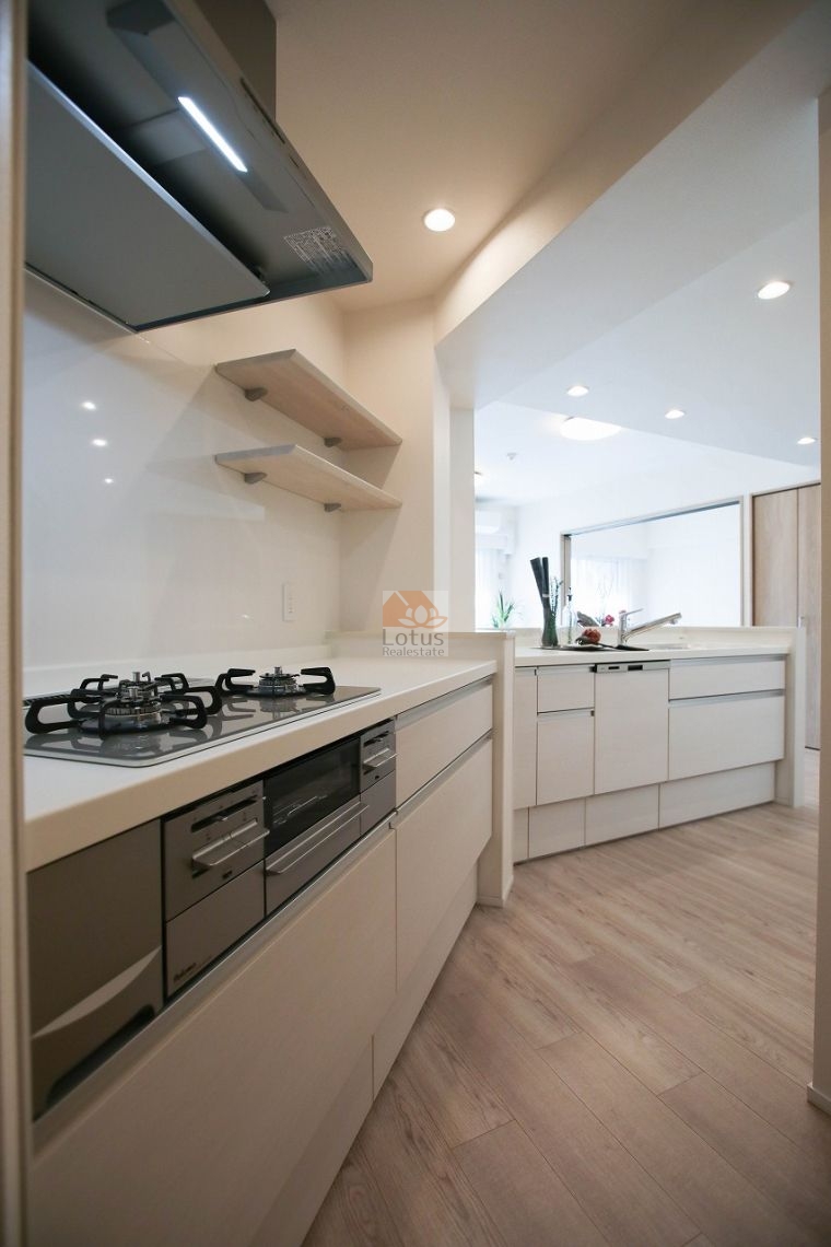 リノベーション:システムキッチン交換(食洗機・浄水器)、ユニットバス交換(浴室乾燥機・追焚)、洗面化粧台交換、トイレ交換(洗浄便座)、全フローリング・フロアタイル・クロス貼替、給湯器交換、照明器具・建具交換等(2025年11月27日完了)