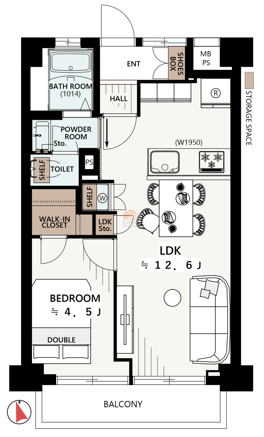 | 間取 | 1LDK 12階 南西 |