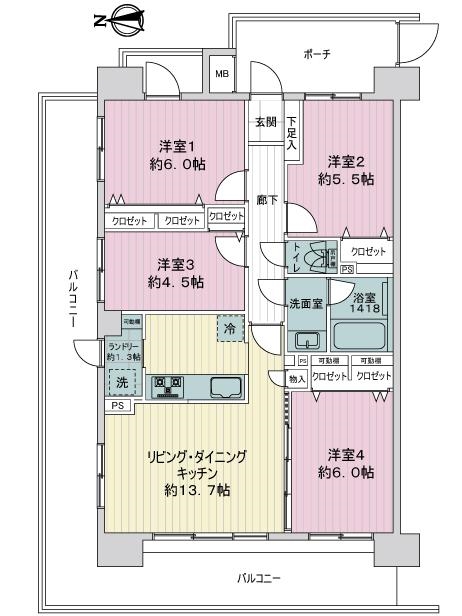 | 面積 | 79.2m² (バルコニー34.6m²) | |||