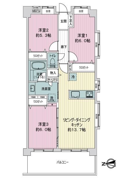 ライオンズステージ五反野壱番館 3F 3LDK 68.32㎡