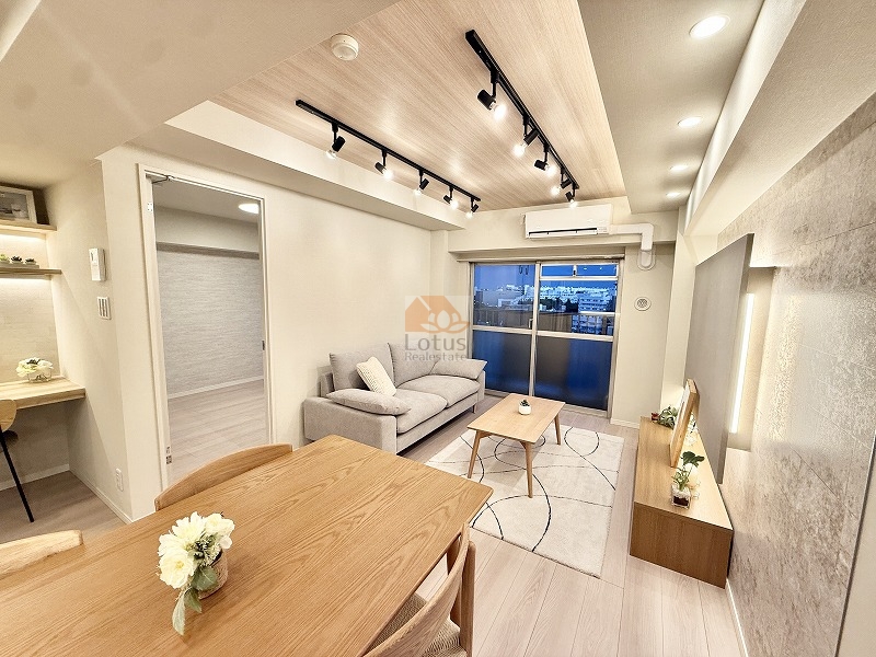 12階の東南向きから望む開放的なパノラマビューは、まさに都心のオアシスです。家具・エアコン付きでの販売となっているため、引越し当日から理想の生活がスタートでき、忙しい方でも手間なく洗練された暮らしをすぐに手に入れることができます。