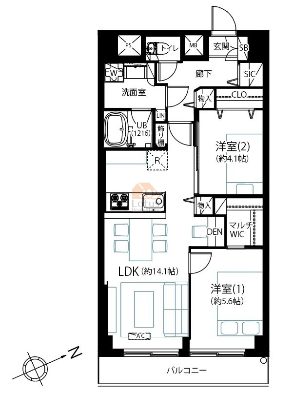 | 面積 | 59.92m² 壁芯(バルコニー5.6m²) | |||