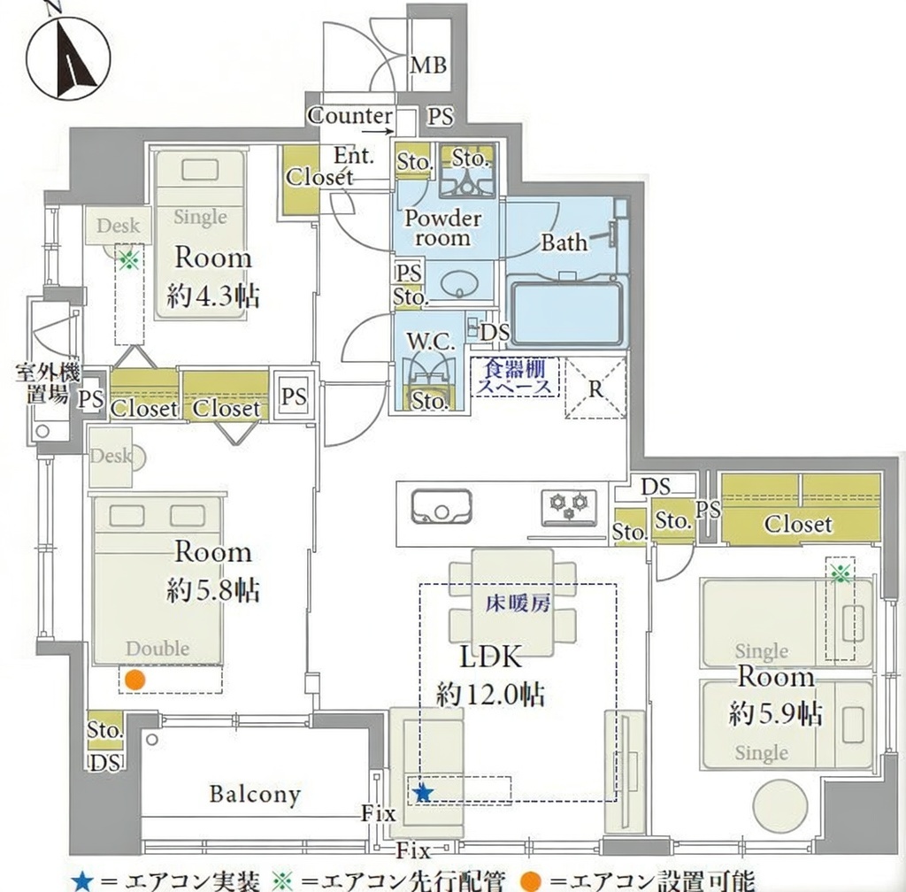 | 面積 | 63.64m² (バルコニー3.79m²) | |||