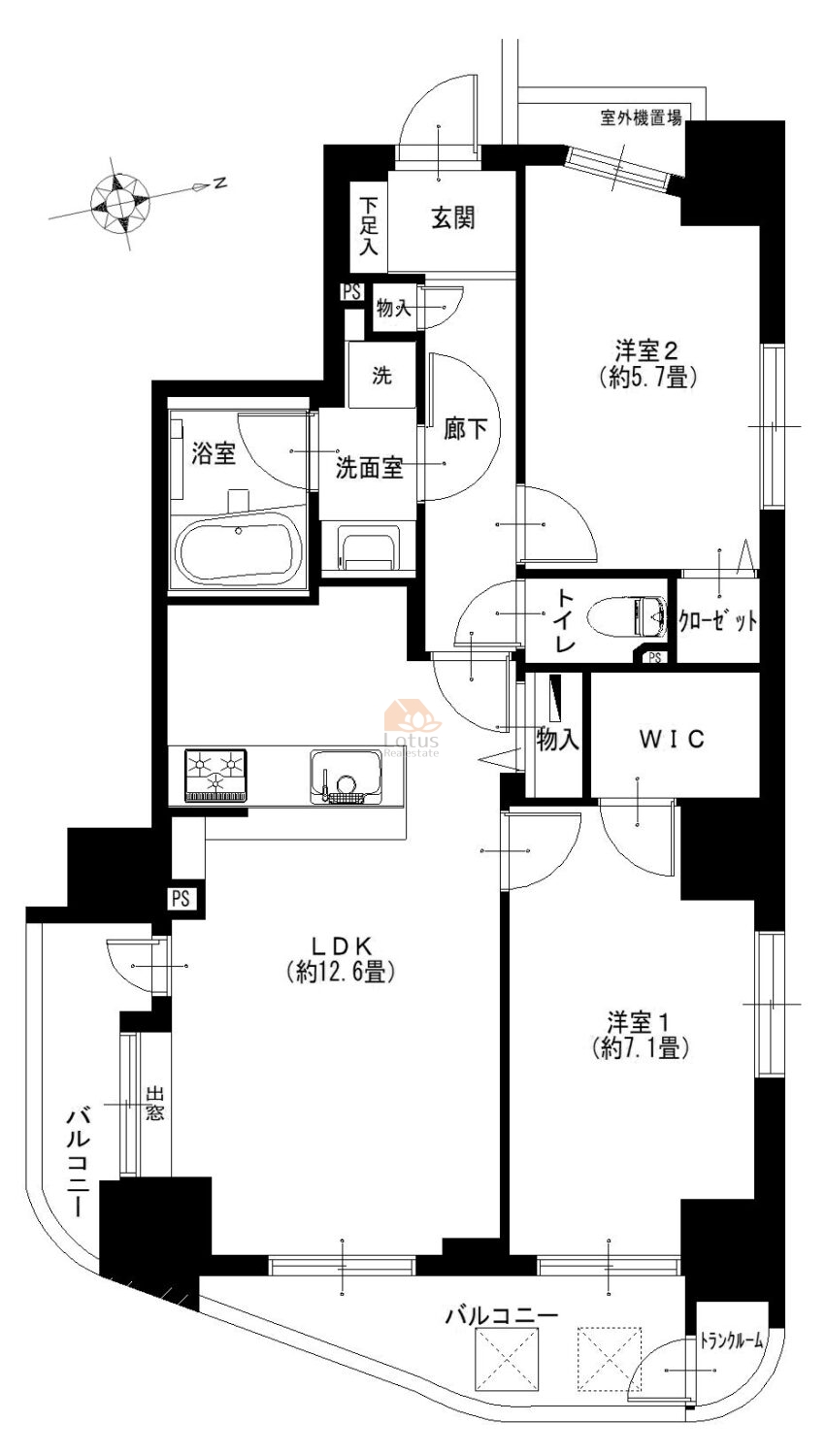 | 面積 | 59.58m² 壁芯(バルコニー9.33m²) | |||