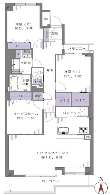 | 間取 | 2SLDK 14階 |