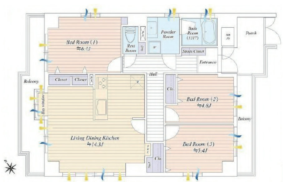 | 面積 | 74.88m² (バルコニー15m²) | |||