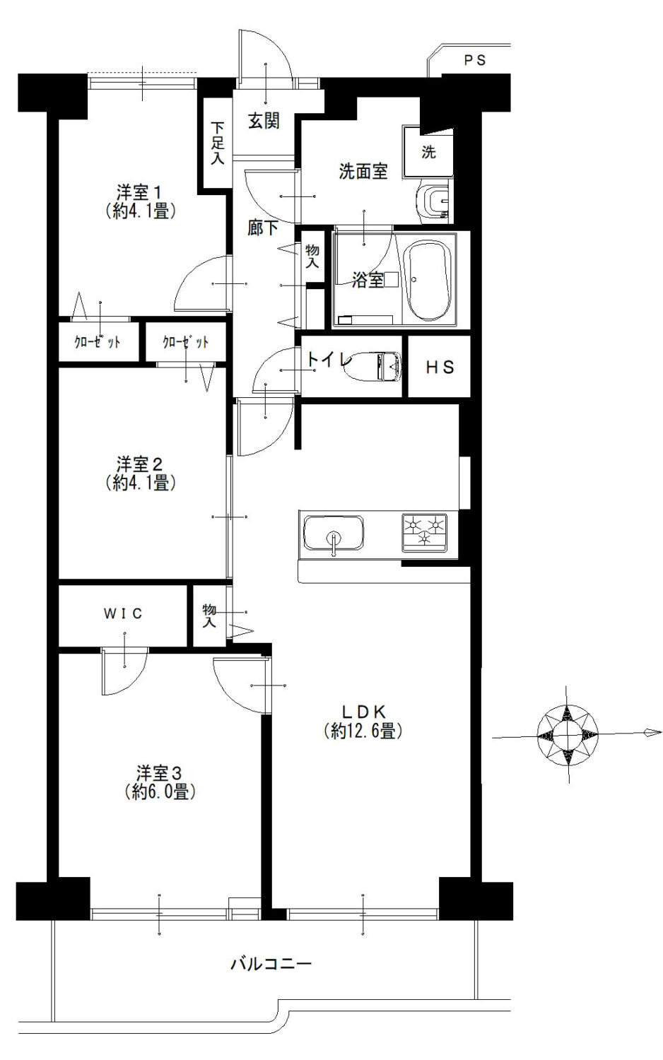 | 面積 | 61.6m² 壁芯(バルコニー7.6m²) | |||